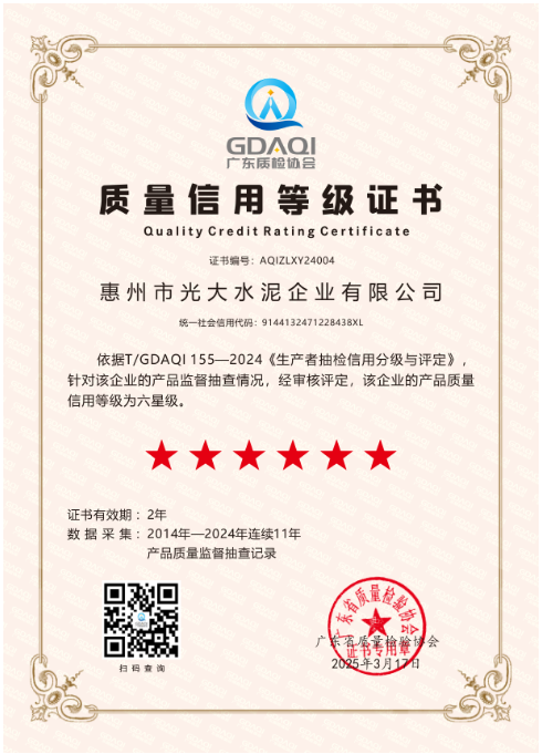 更多光大水泥榮獲廣東省質量信用最高等級榮譽證書[2025-05-16]